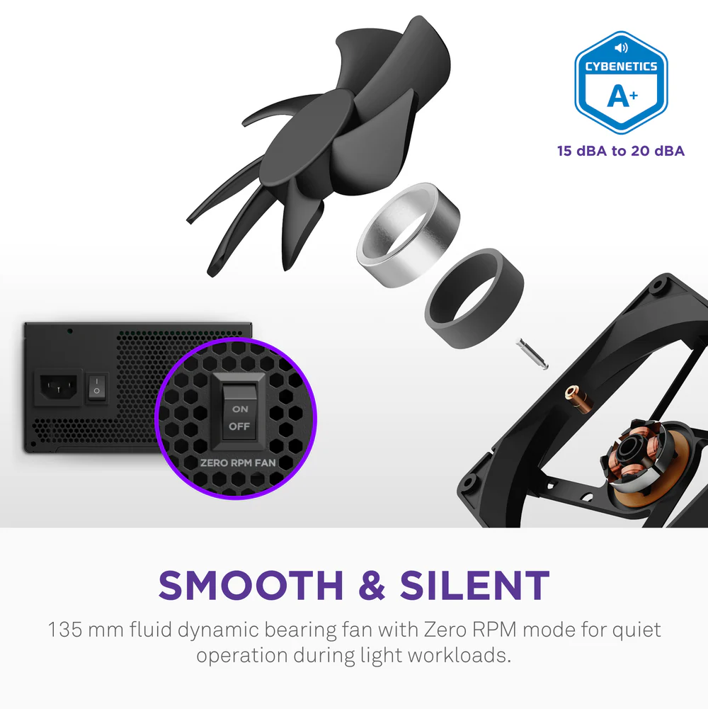 - تصنيف Cybenetics Platinum للضوضاء المنخفضة والموثوقية العالية