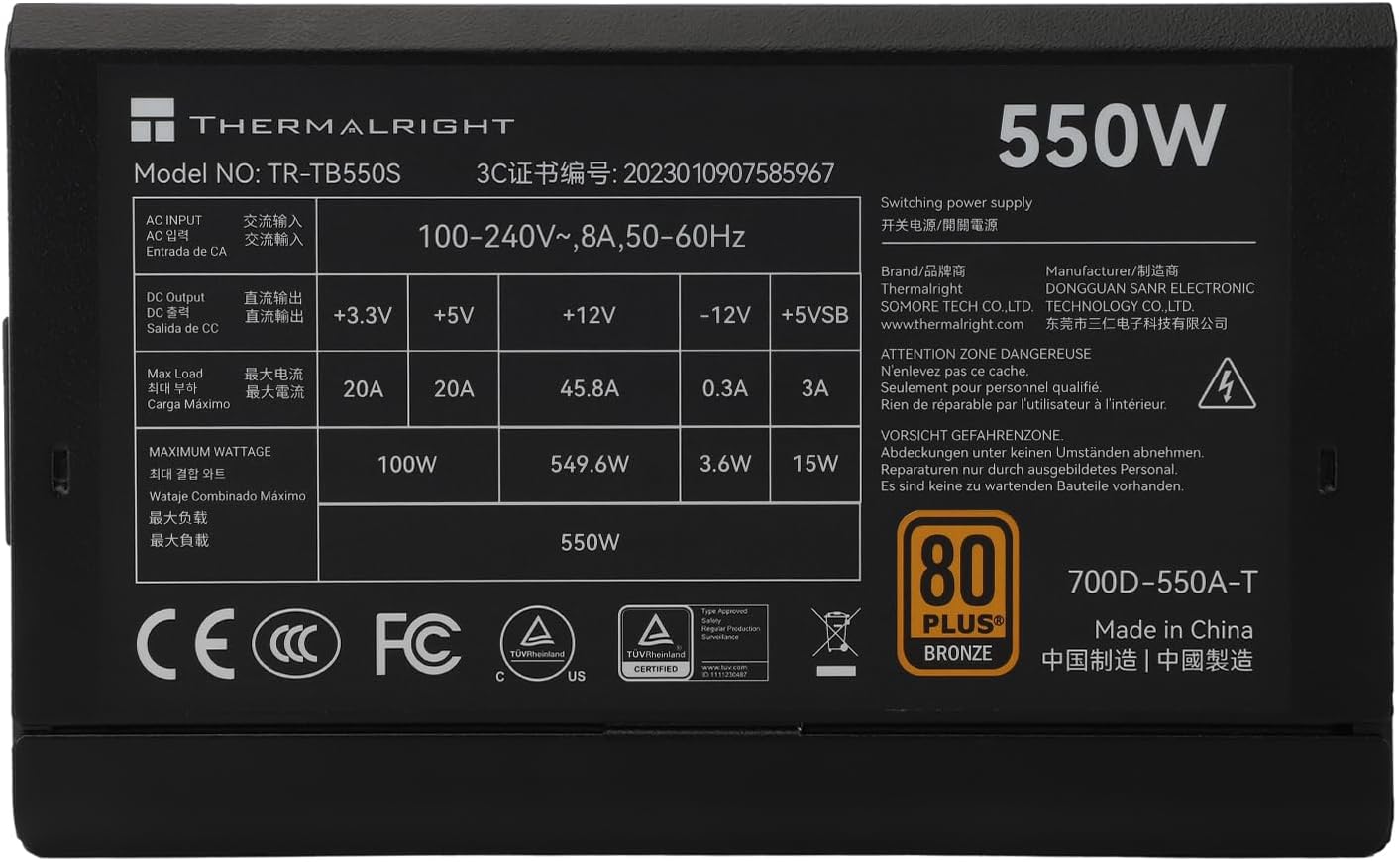 مصدر طاقة ATX موثوق به بقدرة 550 واط وكفاءة 80+ Bronze، مناسب لأجهزة الكمبيوتر الشخصية من الفئة المتوسطة وأنظمة الألعاب.