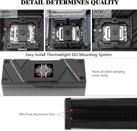 يتميز تصميمه المضغوط بارتفاع 154 مم وتصميمه المزاح، مما يجعله متوافقًا مع معظم صناديق الحاسوب متوسطة وكبيرة الحجم دون أن يتعارض مع وحدات الذاكرة العالية. يدعم المبرد مجموعة واسعة من مقابس المعالج، بما في ذلك Intel LGA115X, LGA1200, LGA1700, LGA1851 و AMD AM4 & AM5، مما يجعله مناسبًا لمعظم التجميعات.