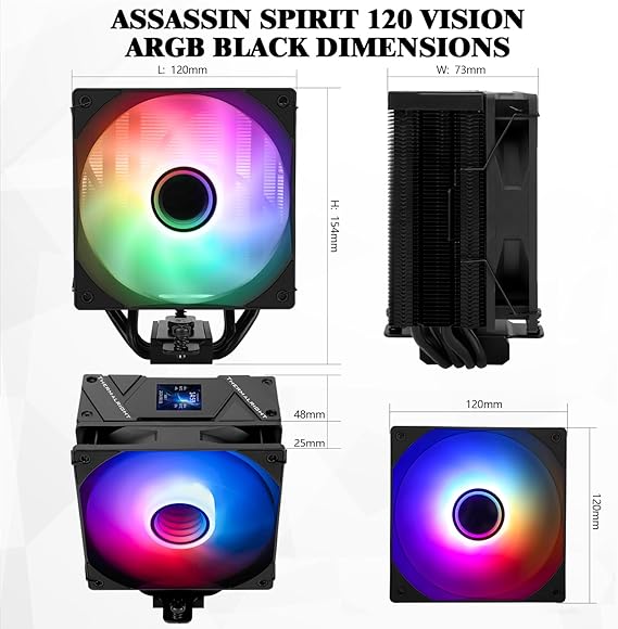 سواء كنت تبني جهاز ألعاب عالي الأداء، محطة عمل لإنشاء المحتوى، أو ترغب ببساطة في مبرد معالج أنيق وفعال، فإن Assassin Spirit 120 Vision ARGB Black يوفر أداء حراري ممتاز، مرئيات قابلة للتخصيص، وتشغيل هادئ.