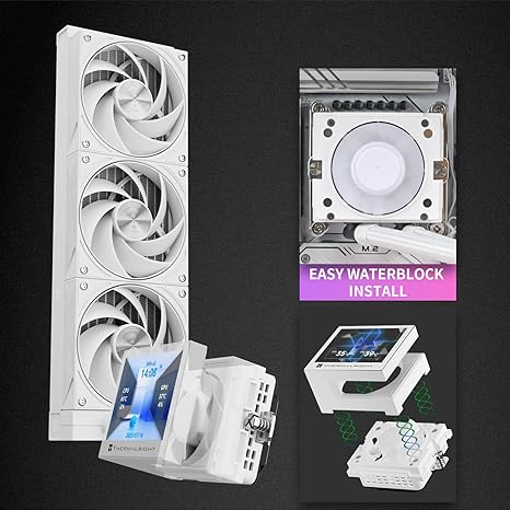 اختبر أداء التبريد المتقدم والمظهر المذهل مع ثيرمالرايت ستريم فيجن 360 الأبيض لمبرد المعالج السائل. صُمم هذا المبرد بحجم 360 مم لجميع الاستخدامات (AIO) لعشاق الألعاب، صانعي المحتوى، وهواة بناء الحواسيب، حيث يقدم أداء حراري استثنائي ويضيف لمسة جمالية مع شاشة LCD 3.5 بوصة قابلة للتخصيص ومراوح ARGB.