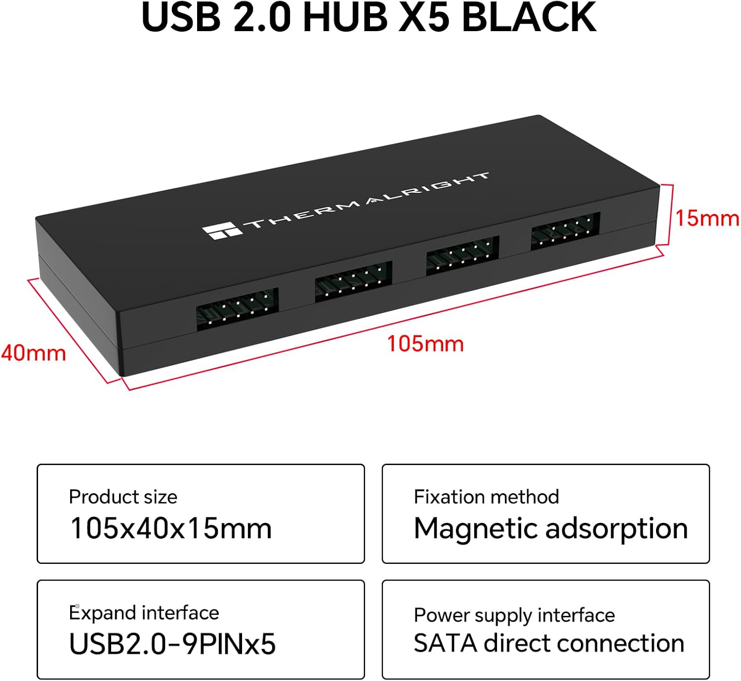 قم بتحسين الاتصال الداخلي لجهازك مع هاب Thermalright USB 2.0 HUB X5، الحل الموثوق، السهل التركيب، وفعّال لتوسيع منافذ USB الداخلية.