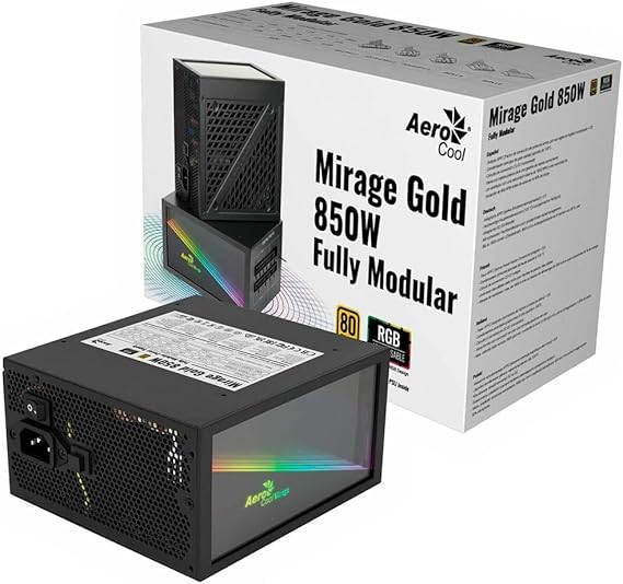 The Aerocool MIRAGEGOLD 850W RGB is a high-performance power supply unit designed for gaming PCs and professional desktop builds. With a maximum output of 850 watts and 80 Plus Gold certification, it delivers reliable and efficient power to all your components while minimizing energy loss and heat generation.
