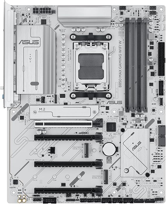 The ASUS B850 MAX GAMING WIFI W is a high-performance AMD AM5 motherboard designed for modern gaming and productivity systems. Built on the AMD B850 chipset, it supports the latest Ryzen™ 7000, 8000, and 9000 Series processors, delivering excellent stability, speed, and future-ready features.