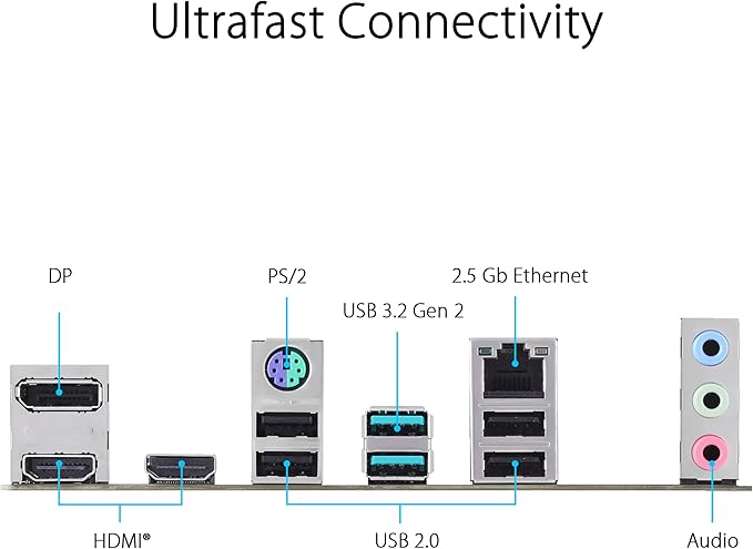 For connectivity, the PRIME B760M-A D4-CSM is equipped with 2.5Gb Ethernet, delivering faster and more stable networking compared to standard LAN solutions. Multiple display outputs including HDMI and DisplayPort support up to 4K resolution, making it suitable for both work and entertainment setups.