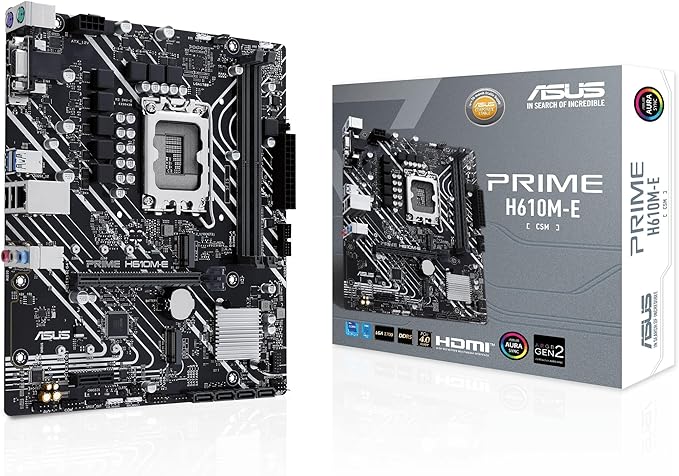 ASUS Prime H610M E CSM Intel LGA1700 MotherboardThe ASUS Prime H610M-E CSM motherboard is designed to deliver reliable performance and essential features for everyday computing, business systems, and home PCs. Built on the Intel H610 chipset, it supports Intel 12th, 13th, and 14th Gen processors with the LGA1700 socket.