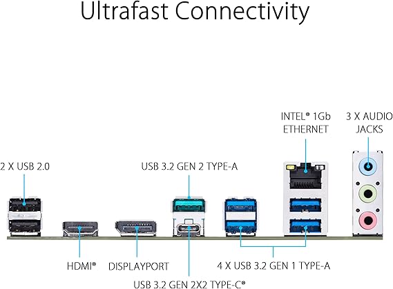 Advanced thermal solutions, including large VRM heatsinks, multiple fan headers, and AI Cooling II, ensure reliable operation even under heavy workloads. Connectivity is further enhanced with USB 3.2 Gen 2x2 Type-C, HDMI and DisplayPort outputs, and Intel 1Gb Ethernet for stable networking.
