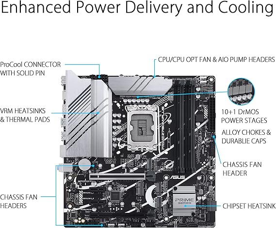 Designed with ASUS Prime’s signature durability and user-friendly BIOS, the PRIME Z790M-PLUS is ideal for users seeking long-term reliability and premium features in a compact form factor.