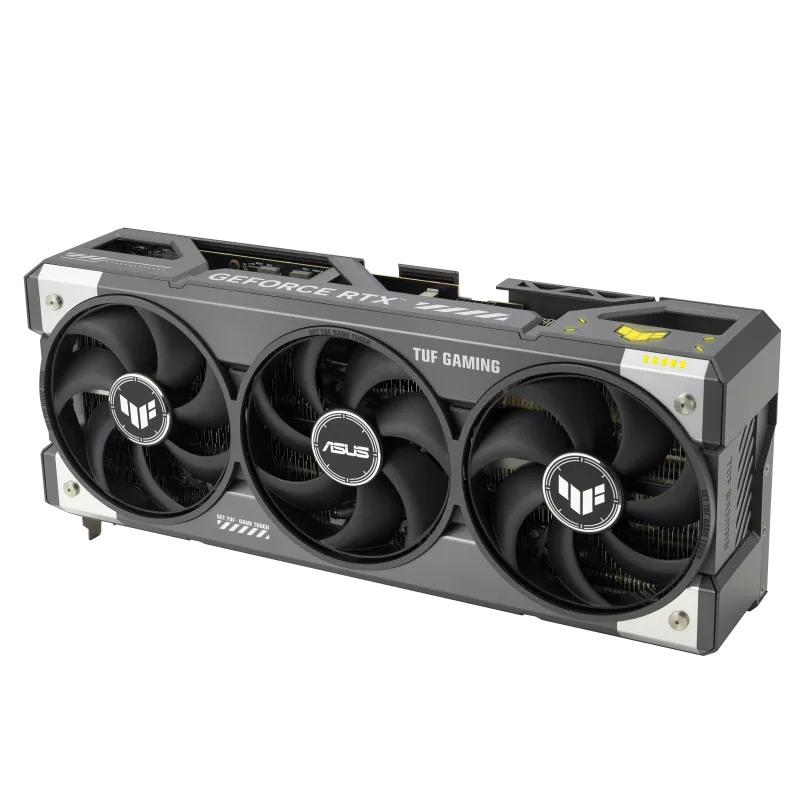 Engineered with ASUS’s renowned TUF durability standards, this graphics card features a robust 3.6-slot cooling design with an optimized heatsink and high-efficiency Axial-Tech fans that provide powerful airflow while maintaining low noise levels. The reinforced metal frame and premium components ensure long-term reliability, stability under heavy load, and consistent thermal performance during extended gaming sessions.