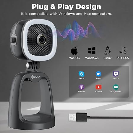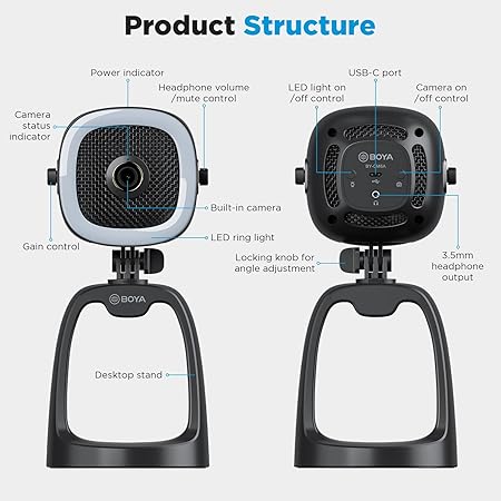 The BOYA BY-CM6A is a professional all-in-one USB condenser microphone designed for content creators, streamers, gamers, and remote professionals who need high-quality audio and video in a single device. Featuring a built-in Full HD 1080p webcam and an adjustable LED ring fill light, this microphone delivers clear visuals and studio-quality sound without requiring additional equipment.
