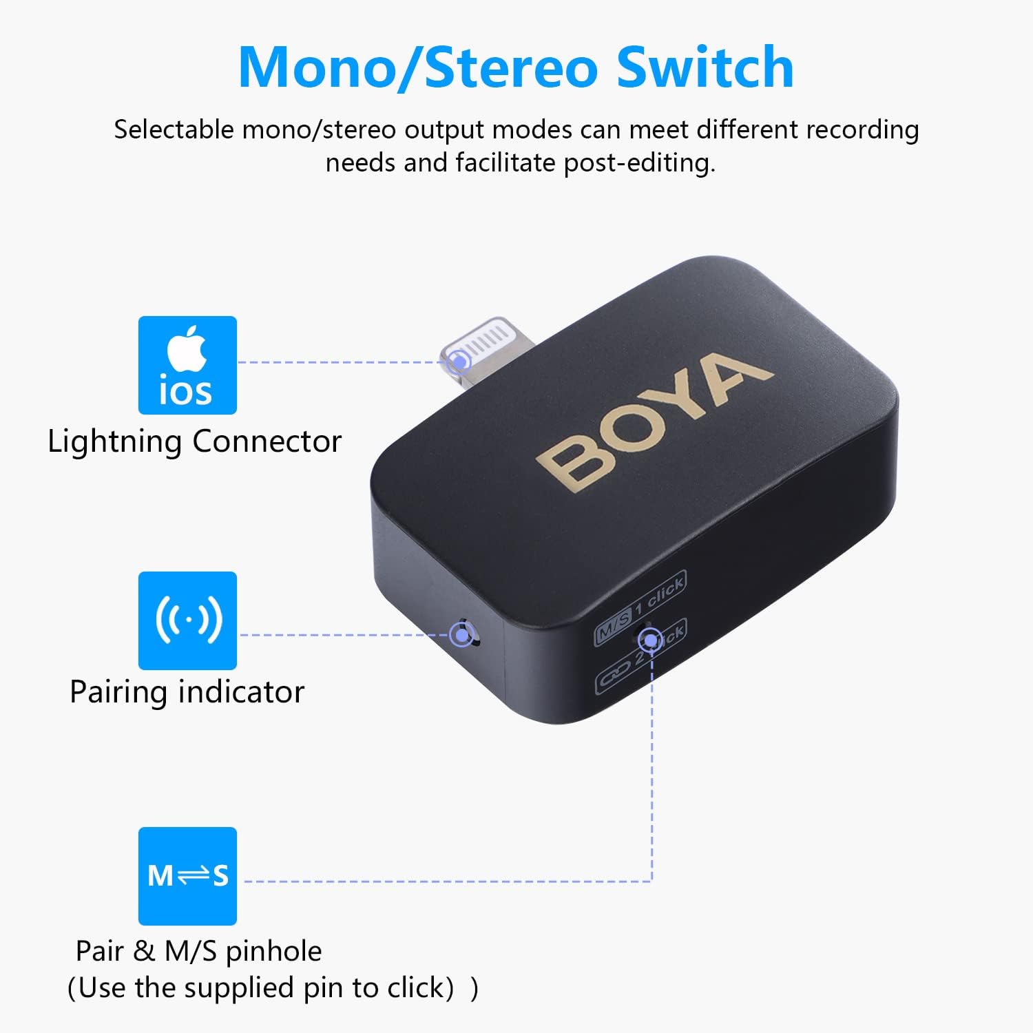 The BOYA BY-M1V5 Wireless Lavalier Microphone is a compact and easy-to-use 2.4 GHz wireless audio solution designed specifically for Apple iPhone and iPad devices with a Lightning port. It delivers clear, stable, and professional-quality sound for content creators, vloggers, journalists, and educators.