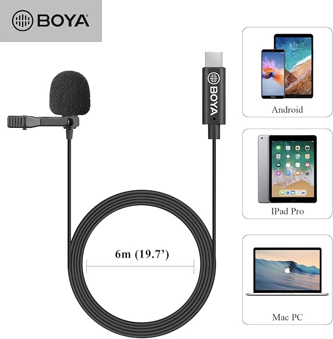 The BOYA BY-M3 is a compact digital lavalier microphone designed for clear and reliable voice recording via USB connection. With its lightweight clip-on design, it easily attaches to clothing, making it ideal for online meetings, video calls, interviews, podcasts, and content creation.
