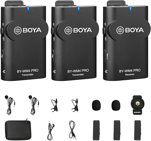 The Boya BY-WM4 PRO K2 is a dual-channel 2.4 GHz wireless lavalier microphone system that lets you capture clear, professional-quality audio from two speakers simultaneously. Featuring two compact bodypack transmitters with omnidirectional clip-on lapel mics and a single lightweight receiver, this system is designed for vloggers, interviewers, content creators, and live streamers.