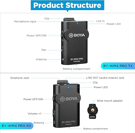 The plug-and-play setup requires no complicated pairing — just power on the units and connect the receiver to your device using the included TRS or TRRS cables. With a reliable 2.4 GHz digital transmission, real-time headphone monitoring, adjustable gain, and wide compatibility with smartphones, DSLR cameras, camcorders, tablets, and recorders, the BY-WM4 PRO K2 is perfect for recording high-quality audio on the go.