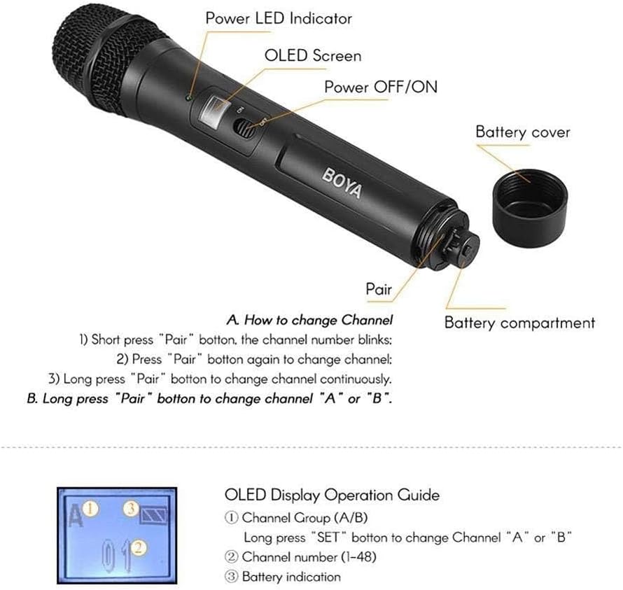 The Boya BY-WM8 Pro-K3 is a professional dual-channel UHF wireless microphone system designed for reliable, interference-free audio capture. It features two compact transmitters and one receiver that operate on UHF frequencies to ensure stable audio transmission with reduced noise and signal dropout.