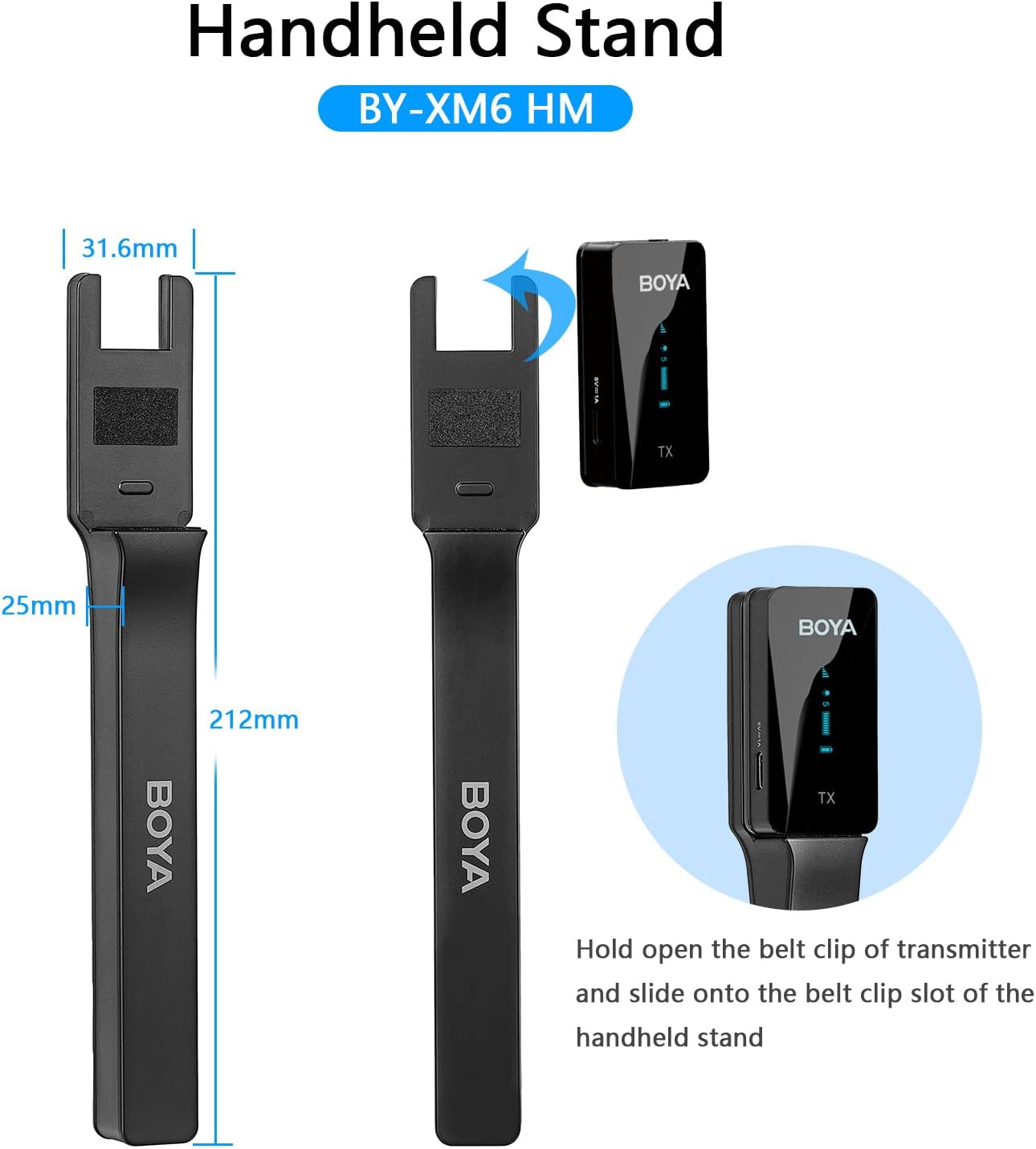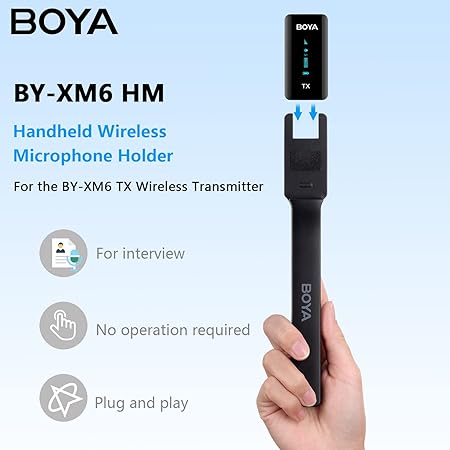 Handheld holder for BOYA BY-XM6 series wireless transmitters. Perfect for interviews, vlogs, YouTube, and content creation