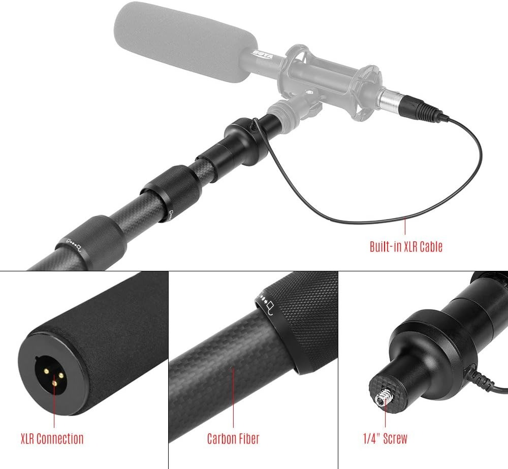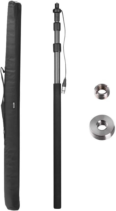 The Boya BY‑PB25 Carbon Fiber Boompole with Internal XLR Cable is a high‑performance, lightweight boom pole designed to bring your microphone closer to the sound source while keeping cables neat and out of the way. Made from reinforced carbon fiber, this professional boom pole extends smoothly from approximately 1 m (3.3 ft) to 2.5 m (8.2 ft), making it ideal for film production, broadcast TV, ENG (Electronic News Gathering), interviews, and field recording.
