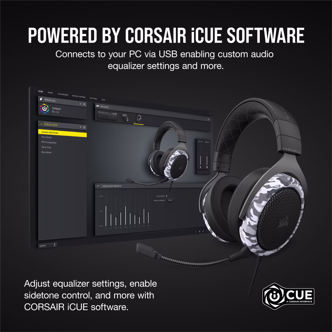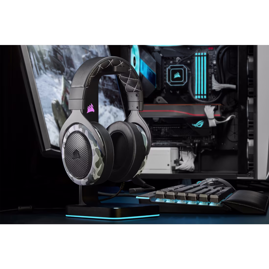 Designed with durable materials and a stylish camouflage design, the HS60 Haptic provides both longevity and a striking look. Its stereo sound combined with haptic bass technology enhances in-game immersion, letting you feel explosions, gunfire, and action with more intensity. Ideal for FPS, MOBA, and adventure gaming, the HS60 Haptic brings your games to life.