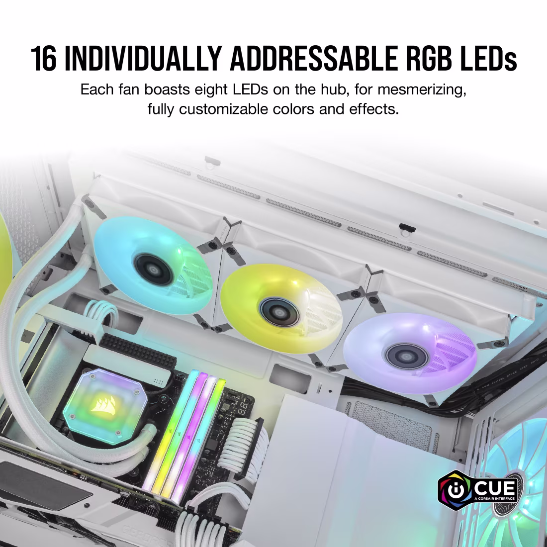 With PWM control, fan speeds are automatically adjusted to maintain an optimal balance between cooling performance and quiet operation. The vibrant RGB lighting is fully customizable via Corsair iCUE software, allowing you to create dynamic lighting effects, synchronize with other iCUE-compatible devices, and personalize your PC’s aesthetic.