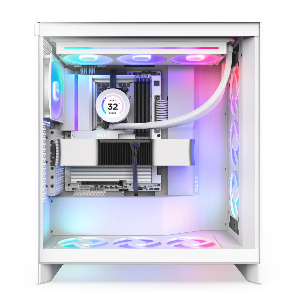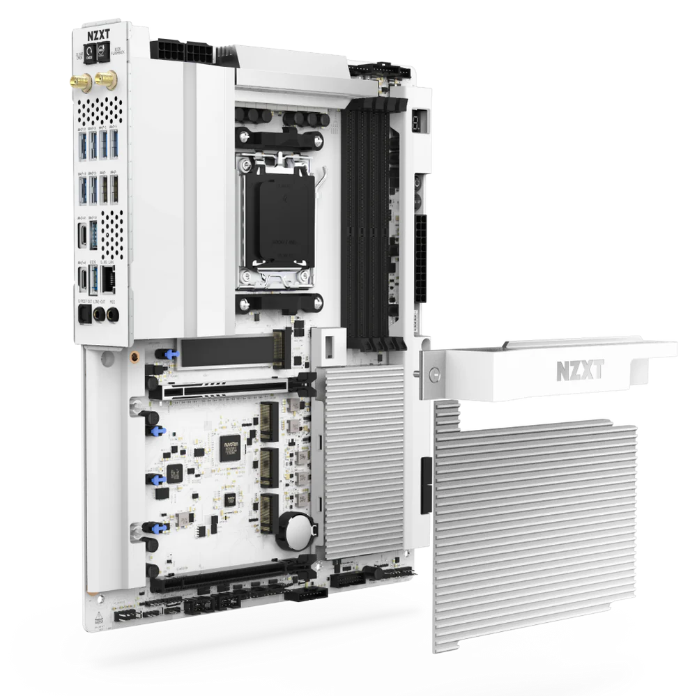 N9 X870 Motherboard WhiteThe NZXT N9 X870E White (Model: N9-X87XT-W1) is a high-end ATX motherboard built for the latest AMD AM5 platform, supporting Ryzen 7000, 8000, and 9000 series processors. It features a robust 20+2+1 phase power design for stable performance and efficient overclocking, along with support for high-speed DDR5 memory. The board includes PCIe 5.0 support, multiple M.2 slots with heatsinks for fast storage, and advanced connectivity options such as USB4, Wi-Fi 7, Bluetooth 5.4, and 5GbE LAN. Designed with both performance and aesthetics in mind, it comes with effective thermal solutions and a sleek full white metal cover with customizable RGB lighting, making it ideal for premium gaming and professional PC builds.