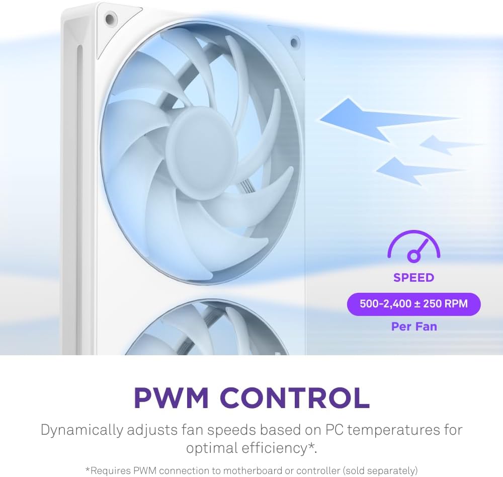 With PWM support, the fan automatically adjusts its speed based on system temperature and cooling requirements. It ramps up under high loads for effective cooling and slows down during light workloads to minimize noise and power consumption.