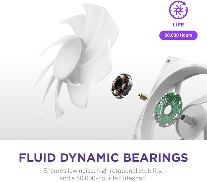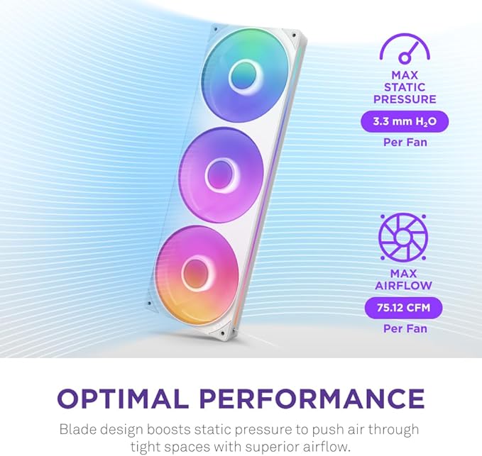 The fan blade design is optimized to provide an ideal balance between high airflow and high static pressure. This allows the fan to move air efficiently through the PC case, heatsinks, and radiators, helping to maintain stable temperatures even under heavy system loads.