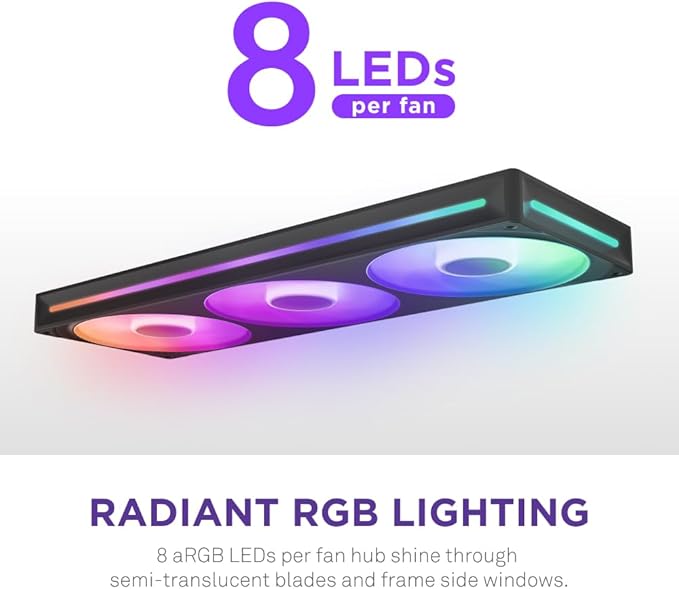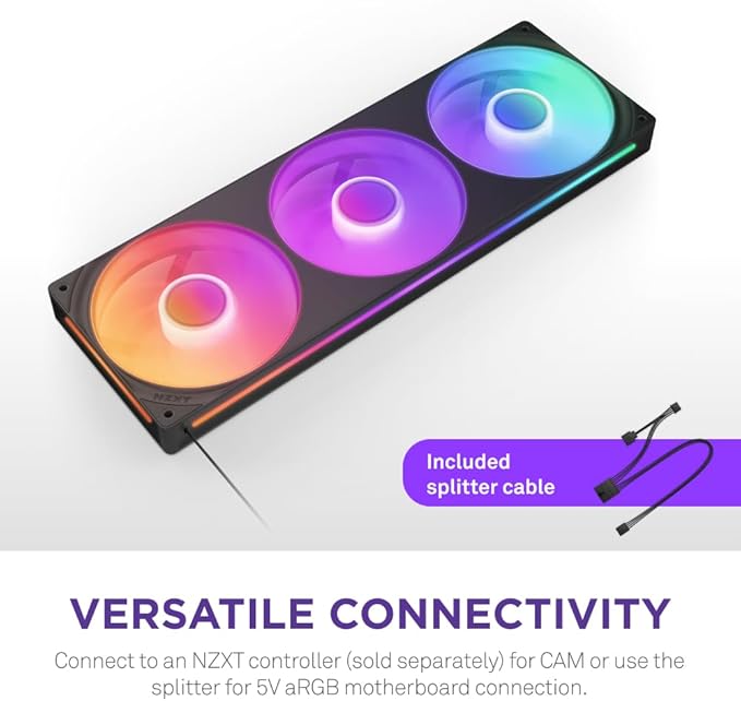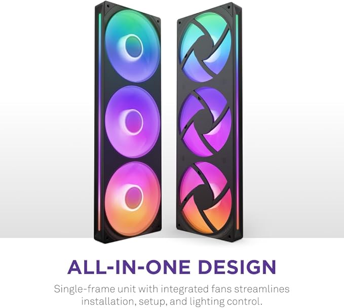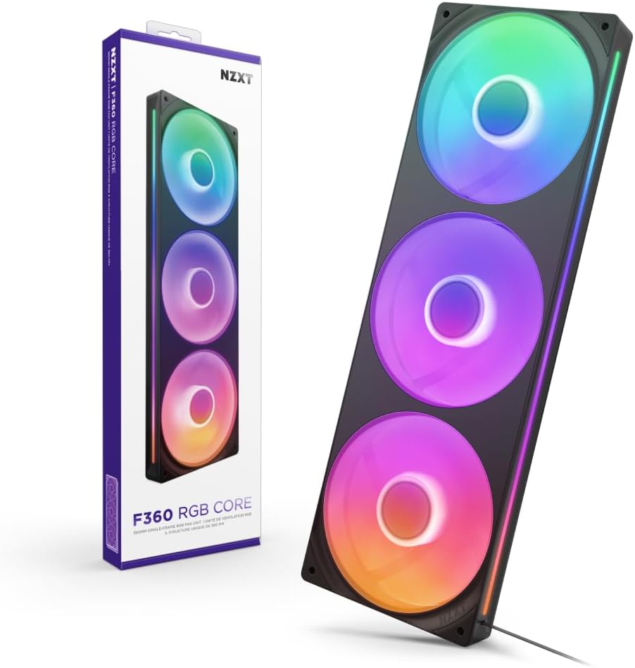 NZXT F360 RGB Core - 360mm Single-Frame Fan Unit with 3 x 120mm RGB Fans - Speed & Lighting Control - High Static Pressure & Airflow - Fluid Dynamic Bearings - 8 aRGB LEDs Per Fan - Black
