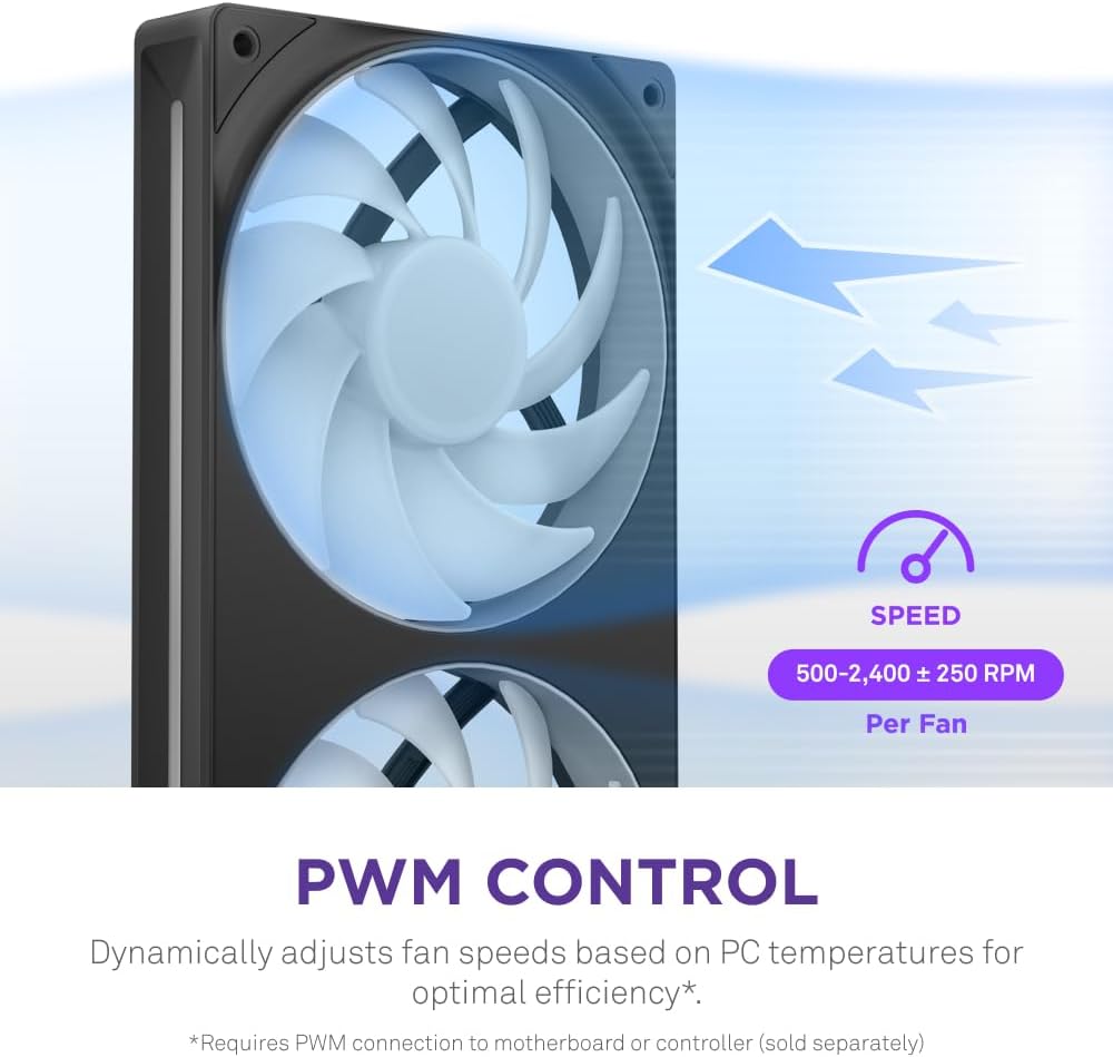 With PWM support, the fan intelligently adjusts its speed based on system temperature and cooling requirements. It delivers higher performance under heavy loads and quieter operation during low workloads, optimizing both cooling efficiency and noise levels.