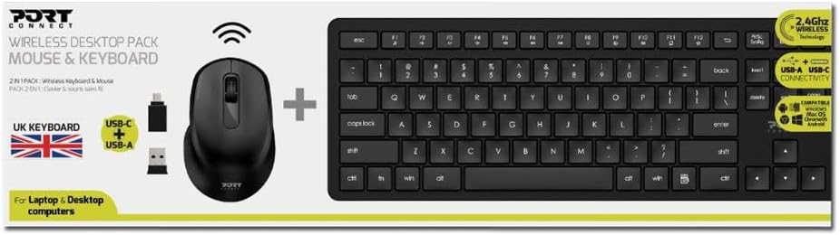 Enhance your productivity and comfort with the PortDesigns 900904-UK Wireless Keyboard and Mouse Combo, the perfect accessory for any setup.