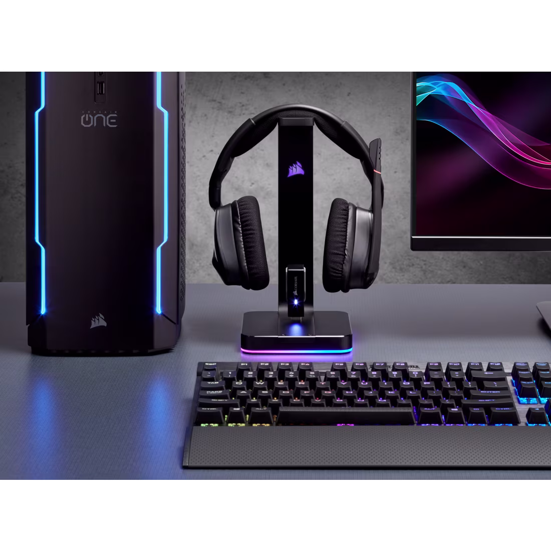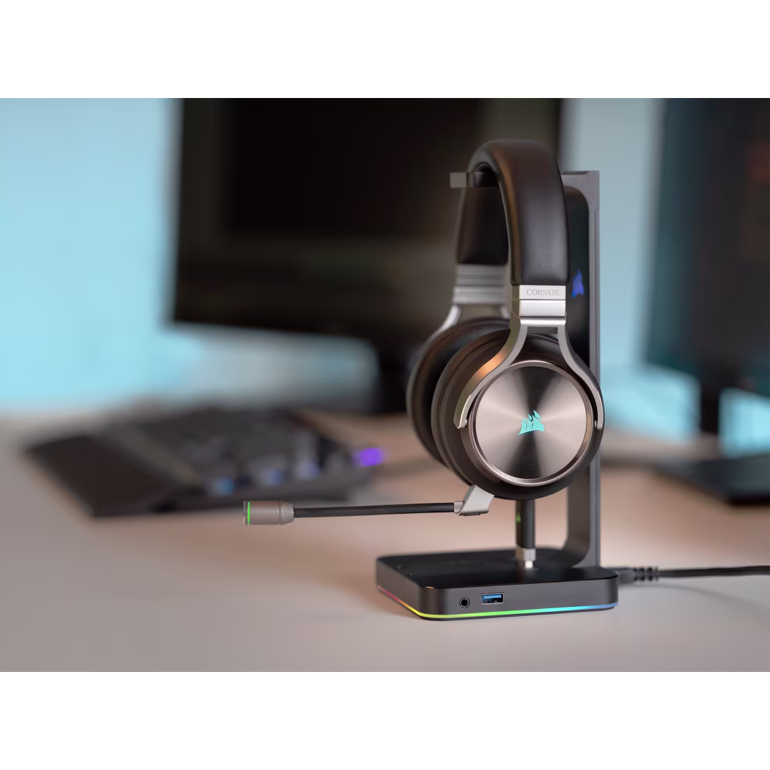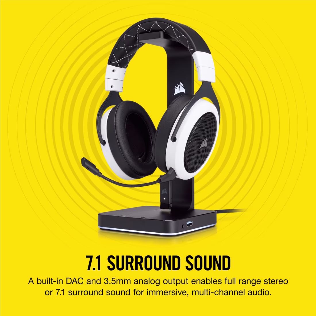 • Premium headset stand with built-in 7.1 surround sound.