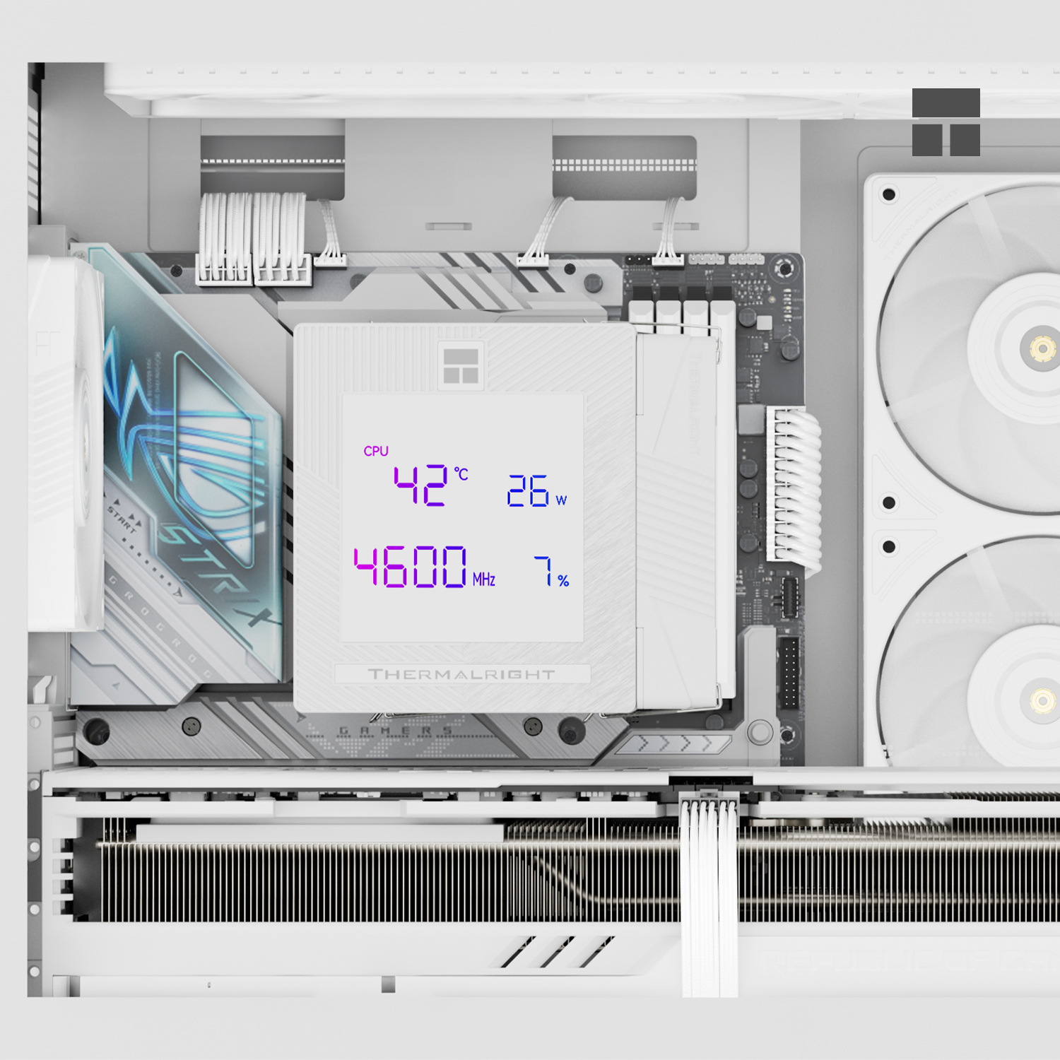 The Phantom Spirit 120 Digital Snow combines advanced cooling performance with modern digital aesthetics, making it an ideal choice for high-performance gaming PCs and professional workstations.