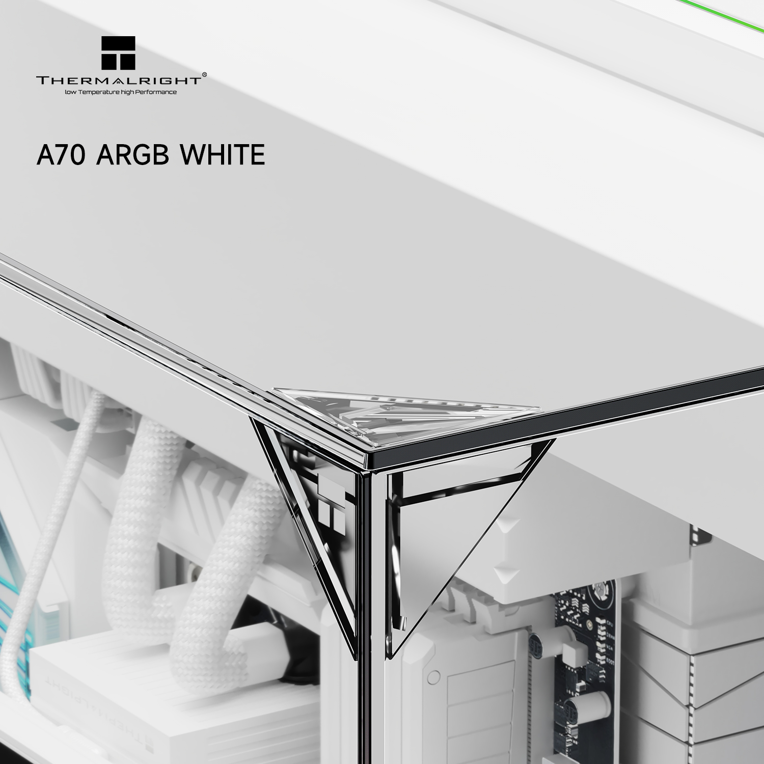 The Thermalright TR A70 ARGB White is a premium mid-tower ATX case designed for gamers, PC enthusiasts, and professional workstations. Featuring three-sided tempered glass panels, it offers a stunning panoramic view of your components, while 5V ARGB lighting creates vibrant, customizable illumination. The case is engineered for excellent airflow, with mesh ventilation and multiple fan/radiator mounting options to keep your hardware cool. With ample space for long graphics cards, tall CPU coolers, and multiple storage drives, it’s perfect for DIY builders seeking style and performance. Easy-to-install hard drives, tool-free tempered glass panels, and clean cable management make building a seamless experience.
